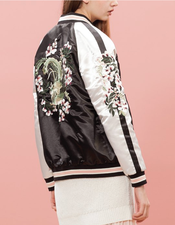 A moda dos bombers parece-me uma boa aposta. Apesar de não ter nenhum, vejo-me perfeitamente a comprar um (que seja simples, sem padrões, para não me comprometer mais tarde) e este aqui da Stradivarius é perfeito.
