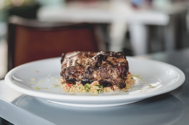 Para começar, arriscámos nas croquetas caseras de jamón iberico (1,40€ cada) e pedimos logo quatro — estávamos mesmo com fome. Mas depressa nos arrependemos e constatámos, por fim, que os espanhóis não sabem fazer croquetes. Não têm nada a ver com os nossos. Adiante. Com a fome com que estávamos, até caíram muito bem. Depois vieram os crujientes de pollo a las dos salsas (10€) que eram tirinhas de frango muito bem fritas, com dois molhos deliciosos. Por fim partilhámos uma Costilla de presa ibérica a la miel con tabulé (12€) que também era muito saborosa.