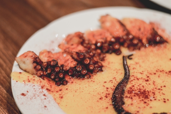 Para terminar pedimos ainda uns huevos fritos com jamón e um pulpo a la brasa. Os ovos estavam uma delícia mas confesso que o meu apetite se prendeu no polvo, de tão saboroso e tenrinho que era! É raro comer polvo — apesar de gostar muito — e este estava no ponto, em todos os aspectos.