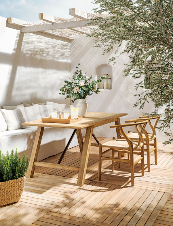 A minha intuição levou-me a criar uma mesa bonita, de jardim, com algumas peças que a compunham de forma perfeita para um almoço de verão. Em cima deixo-vos com algumas das minhas peças favoritas que podem encontrar no Catálogo Decora e ainda no Catálogo de Exterior.