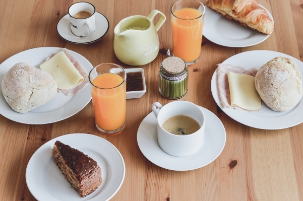 O pequeno-almoço está incluído na estadia e era tão bom. Nada exagerado, apenas na medida certa. E caseiro, o que tornava tudo ainda mais delicioso.