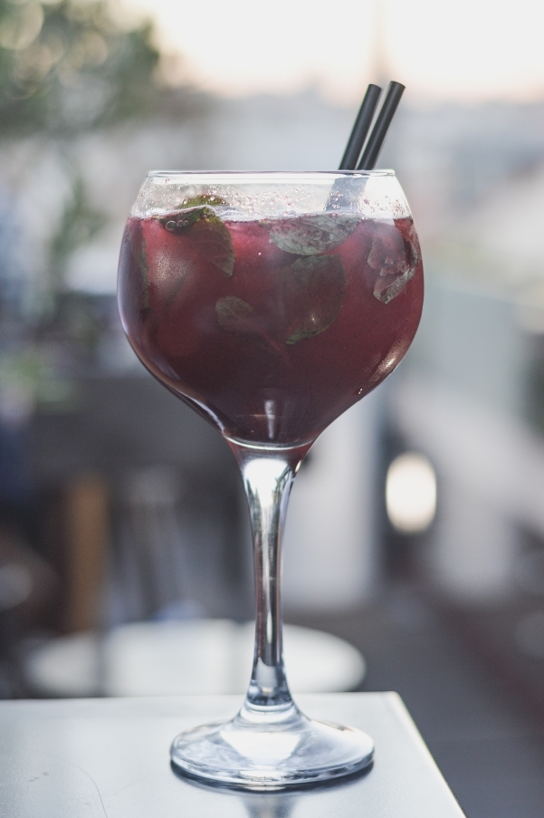 Um rooftop aconchegado, pequenino, emoldurado com uma vista linda. Como já não chegámos lá tão cedo quanto desejado (o melhor mesmo, sem reserva, é ir cedo) o espaço já estava completamente preenchido. Por sorte, conseguimos uma mesinha para dois, na varanda exterior e sentamo-nos sem demoras.