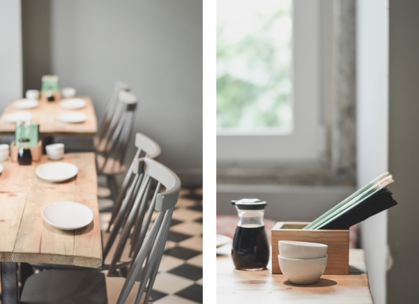É como se entrássemos num outro universo. O ambiente apresenta-se à média luz, perfumado com especiarias e incensos. É aconchegante, cativante. E é delicioso. À entrada temos um grande emblema, em néon vermelho, e por momentos sentimo-nos em Tokyo. Várias fotografias, gravuras e elementos orientais transportam-nos para o outro lado do mundo.
