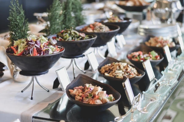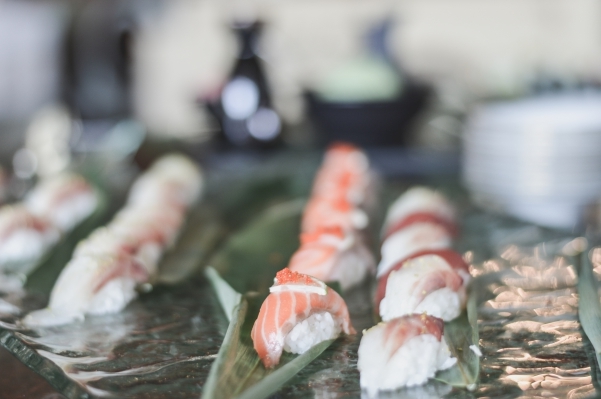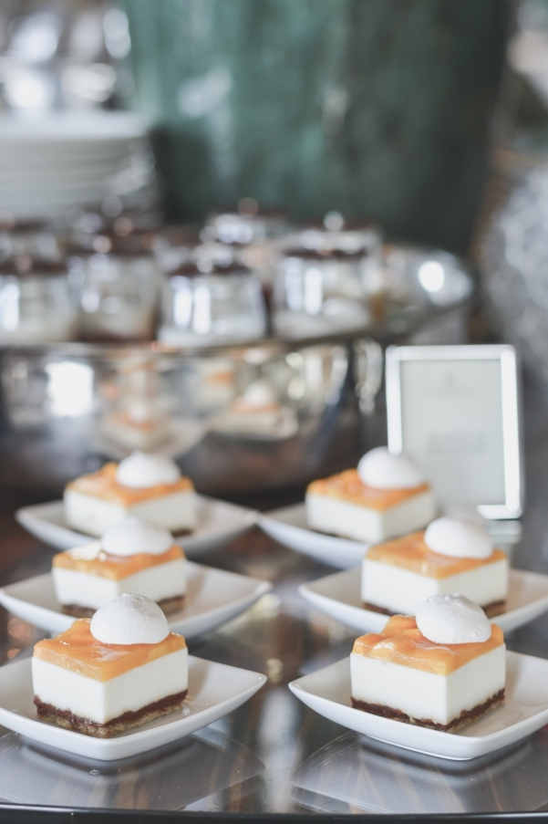 À entrada somos surpreendidos pela amplitude da sala, que nos permite ter uma visão geral do espaço. Temos várias estações, mesas e opções. De um lado uma estação de ceviche; em frente uma mesa de sushi (sim, sushi!); do outro lado temos um carrinho amoroso dos gelados Artisani; mais à frente uma mesa comprida de queijos, enchidos, pães variados, saladas frias, opções vegetarianas; segue-se a estação dos pratos quentes, confeccionados na hora; e para terminar a mesa das sobremesas, repleta de pequenas maravilhas!